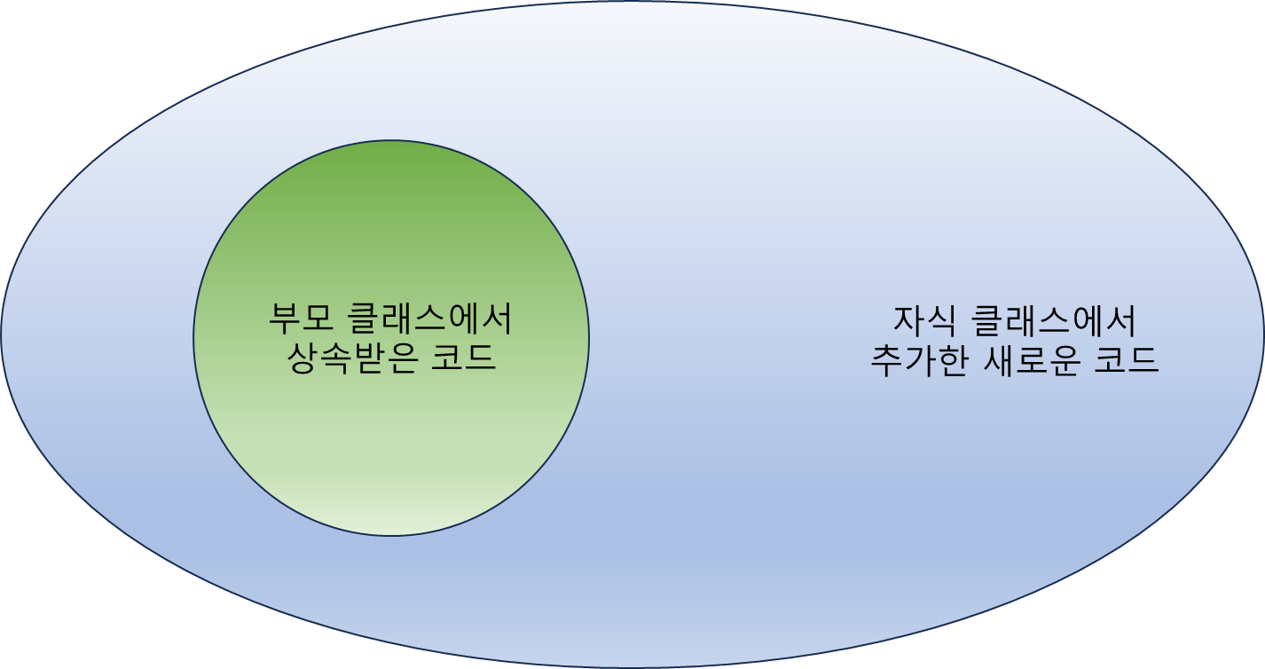 이렇게 상속을 이용하면 코드를 확장하여 새로운 코드를 작성할 수 있다.