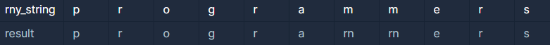 - 예제 2번의 rny_string의 'm'을 "rn"으로 바꾸는 과정을 표로 나타내면 다음과 같습니다.