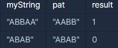 - myString과 pat는 문자 "A"와 "B"로만 이루어진 문자열입니다.